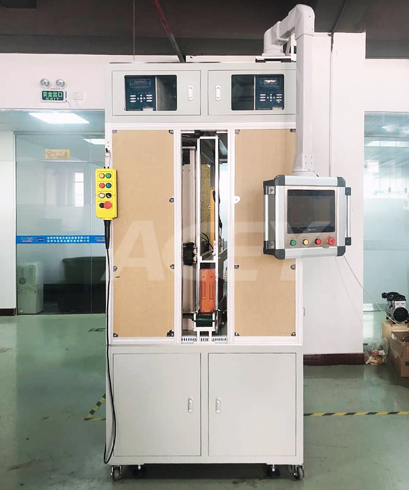O ACEY-D300 é usado para soldagem a ponto automática de bateria de cilindro 18650,21700,26650,32650,32700, pode soldar ambos os lados com alta velocidade e bom efeito e a interface homem-máquina altamente automatizada facilita a operação.