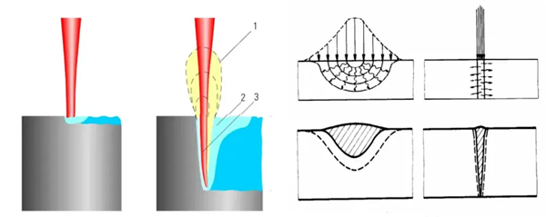 A soldagem a laser inclui a soldagem por condução térmica a laser e a soldagem por penetração profunda a laser. A principal diferença entre a soldagem por condução térmica e a soldagem por penetração profunda reside na densidade de potência aplicada à superfície do metal por unidade de tempo; diferentes metais possuem diferentes valores críticos.