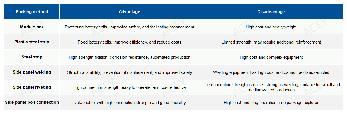 O método de embalagem do módulo tem um impacto significativo no desempenho, segurança e eficiência de produção do módulo. Os métodos comuns de embalagem incluem: caixa do módulo, tira de aço plástica, tira de aço, soldagem ou rebitagem ou aparafusamento do painel lateral.