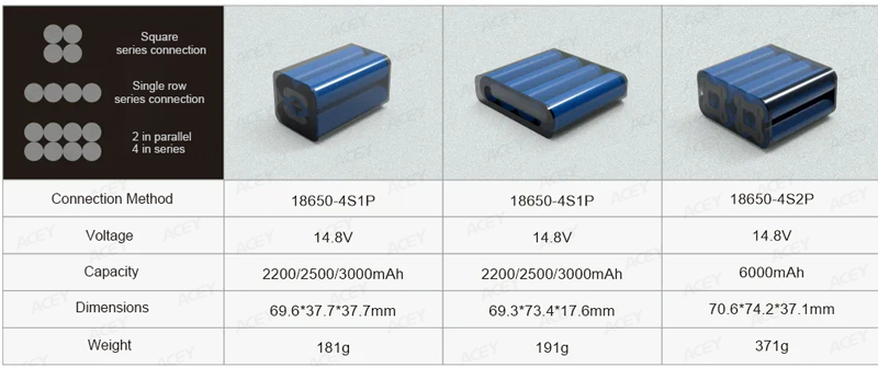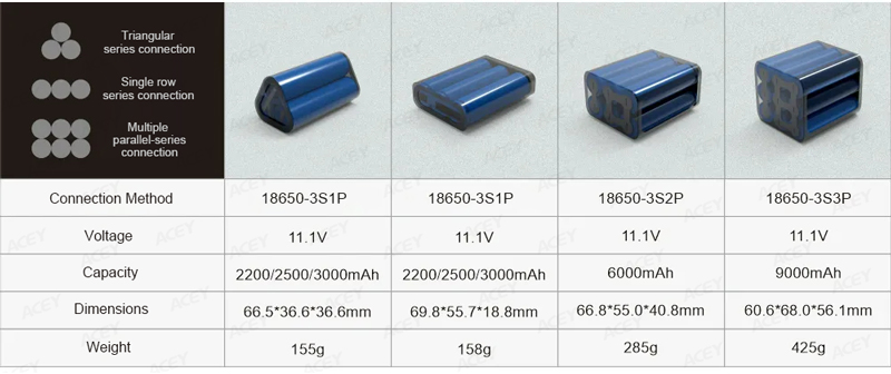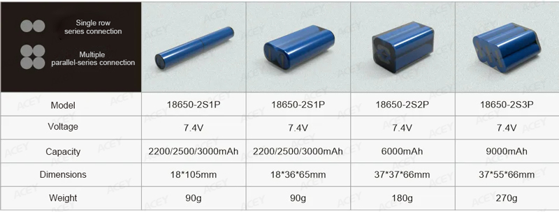 Antes de realizar esse cálculo, precisamos saber as especificações das células utilizadas na bateria. Como diferentes células têm voltagens e capacidades diferentes, o número de conexões em série e em paralelo necessárias para montar uma bateria de lítio específica varia. Os tipos de células de bateria de lítio mais comuns no mercado incluem óxido de lítio-cobalto de 3,7 V, ternária de 3,6 V, fosfato de ferro-lítio de 3,2 V e titanato de lítio de 2,4 V. A capacidade varia dependendo do tamanho da célula, do material e do fabricante.